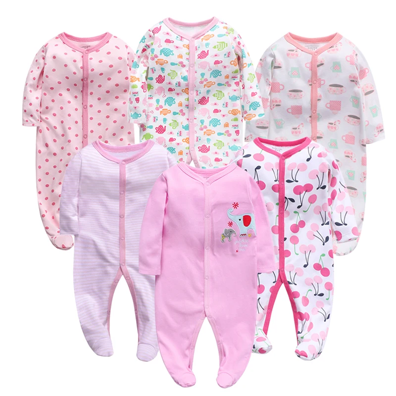 6 шт./лот, детские комбинезоны, Одежда для новорожденных девочек и мальчиков, 100% хлопок, детские пижамы с длинными рукавами, комплекты для малышей с рисунком