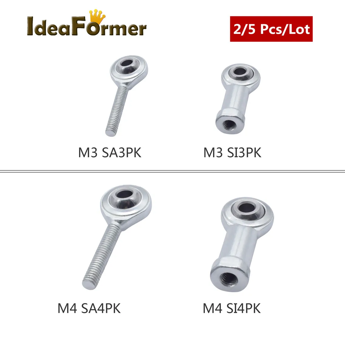 Название: 2/5 шт. SA4PK SA3PK мужской SI3PK SI4PK женский подшипник рыбий глаз M3/M4 правый резьбовой стержень концевой подшипник для 3D принтера Delta Kossel. Модель: SI4PK SA4PK SI3PK SA3PK Резьбовая резьба: M3/M4. Диаметр отверстия: 3 мм/4 мм. Материал: Сталь. Какая сторона плотно прилегает: правая сторона. Диаметр Вращающегося Шарика: 3 мм для SI3PK,SA3PK;4 мм для SI4PK,SA4PK. Резьбовое отверстие: внутреннее, правостороннее, M3 для SI3PK,SA3PK; M4 для SI4PK,SA4PK.