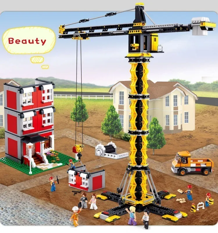 Название блоков: Sluban B0555 1461 шт. модель башенного крана строительные блоки наборы кирпичей классические Обучающие игрушки хобби совместимые Lm Lme