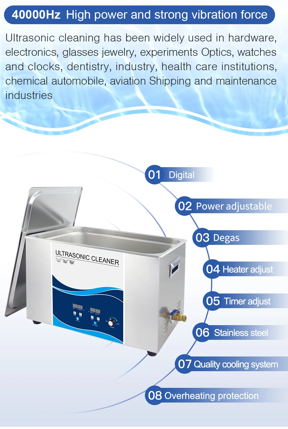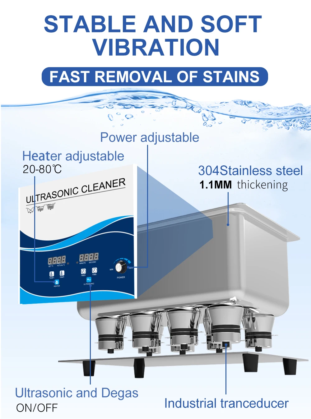 6.5L Ультразвуковой очиститель для ванной комнаты из нержавеющая стали 180 Регулируемая мощность 40 кГц дегазации ультразвуковой очиститель зубной щетки Зубная щетка Домашний медицинский