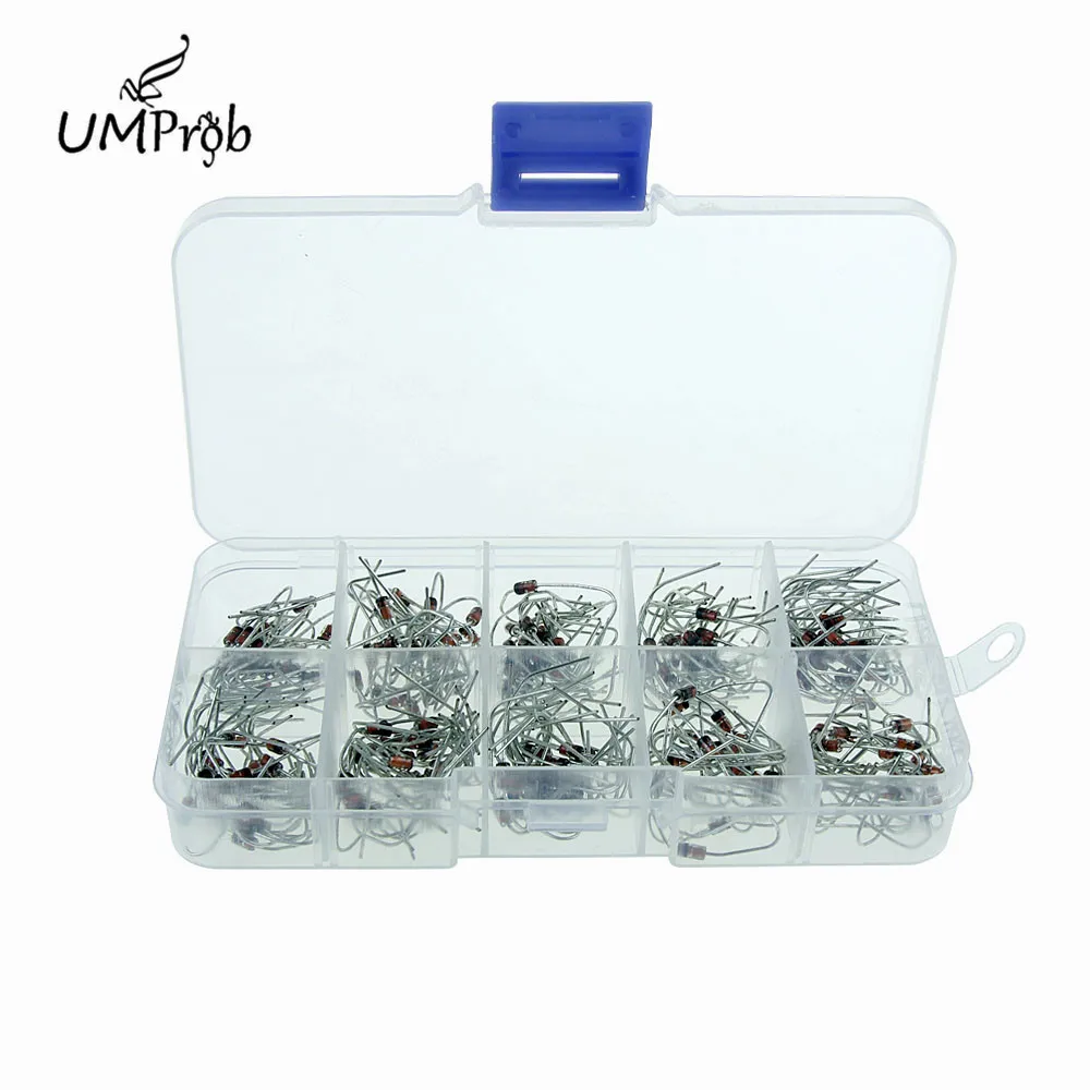 10 значений x20 200 шт Диод Зенера ассортимент электронный комплект 1N4738 ~ 1N4748 с коробкой для хранения