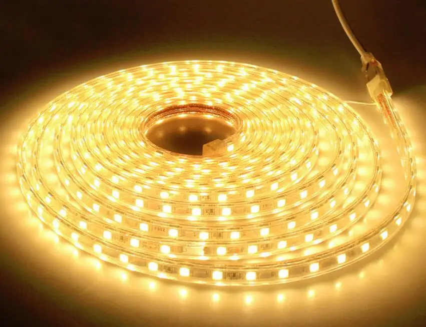 220 В Светодиодная лента 5050 Epistar чип с вилкой питания 1 2 3 4 5 6 7 8 9 10 15 20 25 метров 60 светодиодов/м водонепроницаемый 7 цветов светильник UR