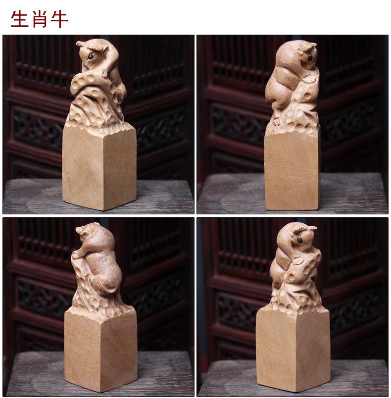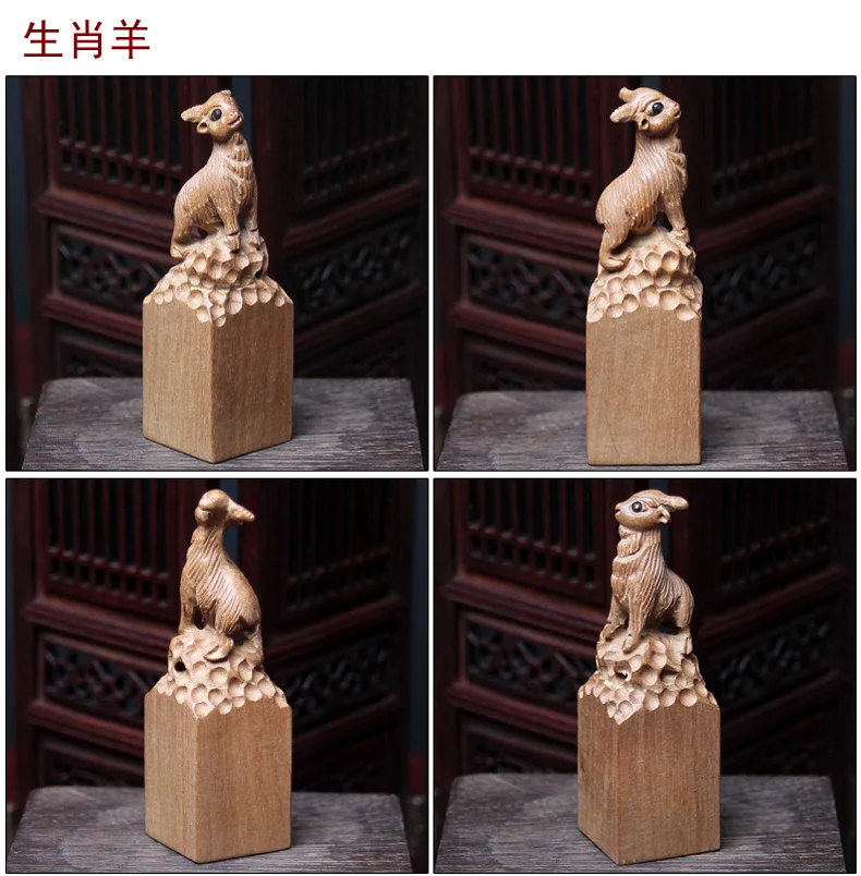 【宝贝名称】桃木十二生肖印章摆件