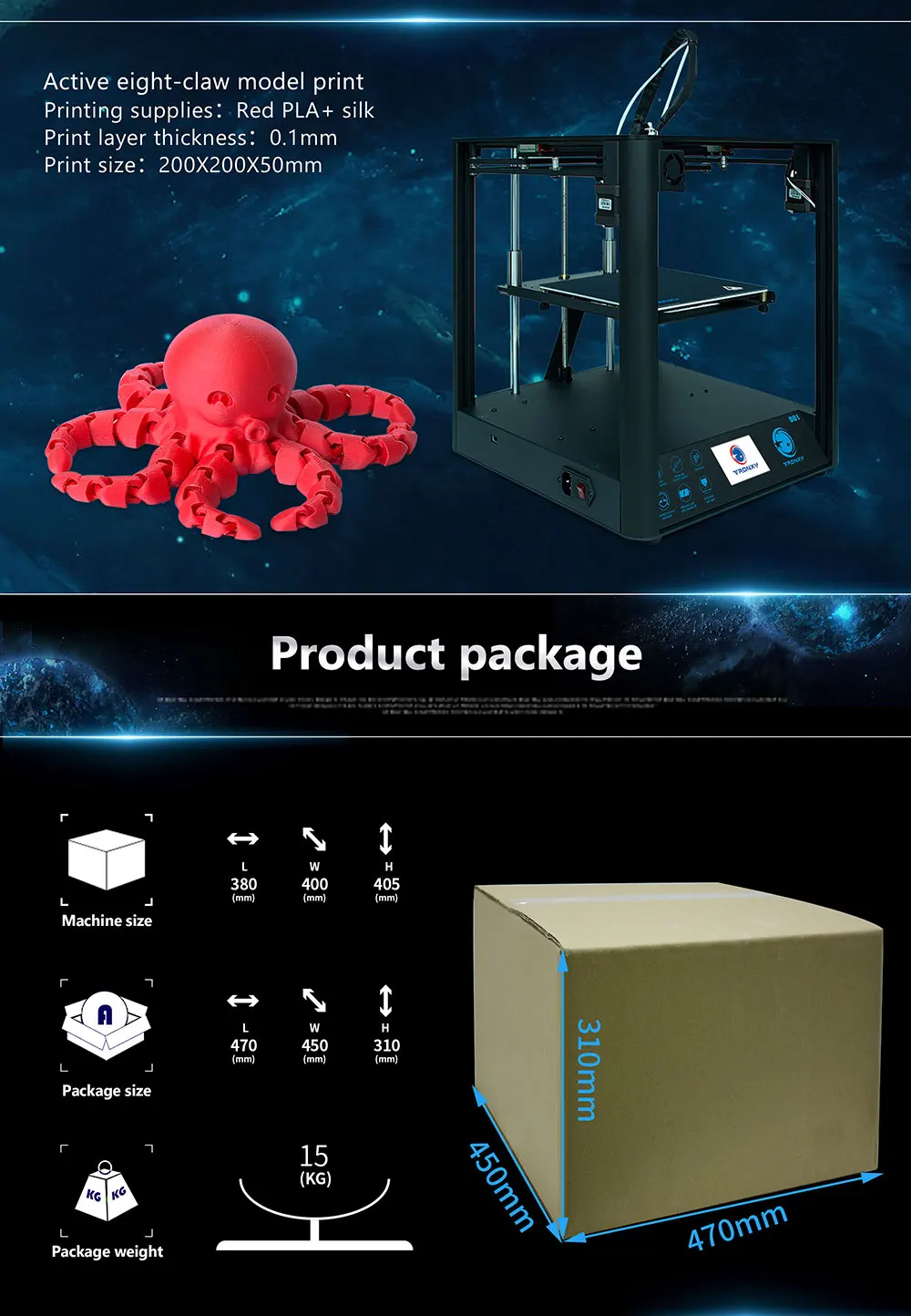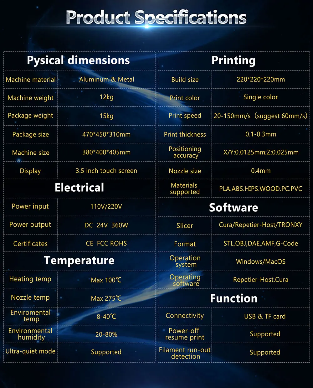 Максимальный размер печати: 220*220*220 мм 【Промышленная линейная направляющая MGN12H 】лучшая Прямолинейность и небольшой шум, делает головку принтера более плавной. 【Использование экструдера TITAN 】 который адаптирован к различным нитям, таким как PLA, ABS, PETG, WOOD, TPU, FXABLE 【Более важные особенности 】 1) возобновите печать после выключения питания. 2) обнаружение нити заканчивается, когда нить заканчивается или отключена, принтер автоматически приостановится, чтобы гарантировать, что модель может быть плавно напечатана. 【Головка принтера integrate】включает ограничитель X, адаптер, вентилятор охлаждения, вентилятор, светодиодный светильник и систему автоматического выравнивания. Обратите внимание: Сложный процесс сборки был завершен до выхода из фабрики, но Принтер должен быть просто собран, чтобы объединить собранные детали. -Бесплатная доставка в большинство стран (неудаленная область), для удаленной области, необходимо добавить дополнительную почтовую плату, пожалуйста, подтвердите это DHL, UPS или Fedex локально, если вы не уверены. Или сначала спросите у продавца.