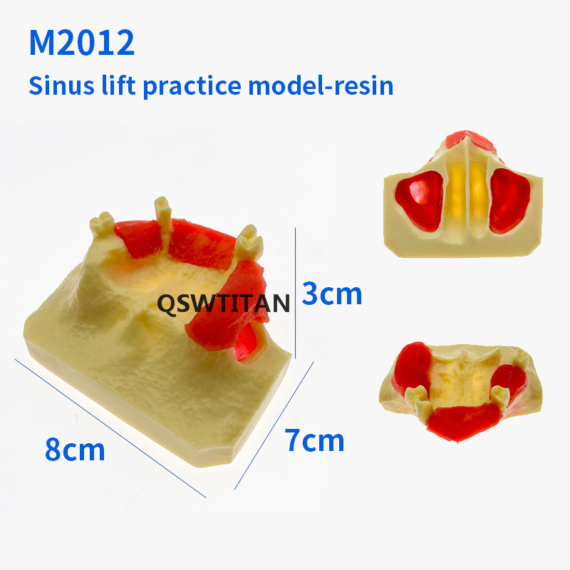 Модель maxilla используется для иллюстрации неповрежденного синуса с одной стороны; На другой стороне находится синус с мембраной для практики подъема синуса; Толщина костной ткани задней области предназначена для бокового подъема пазухи и практики остеометрии; Шнайдерская мембрана изготовлена из тонкого материала для повышения реалистичности.