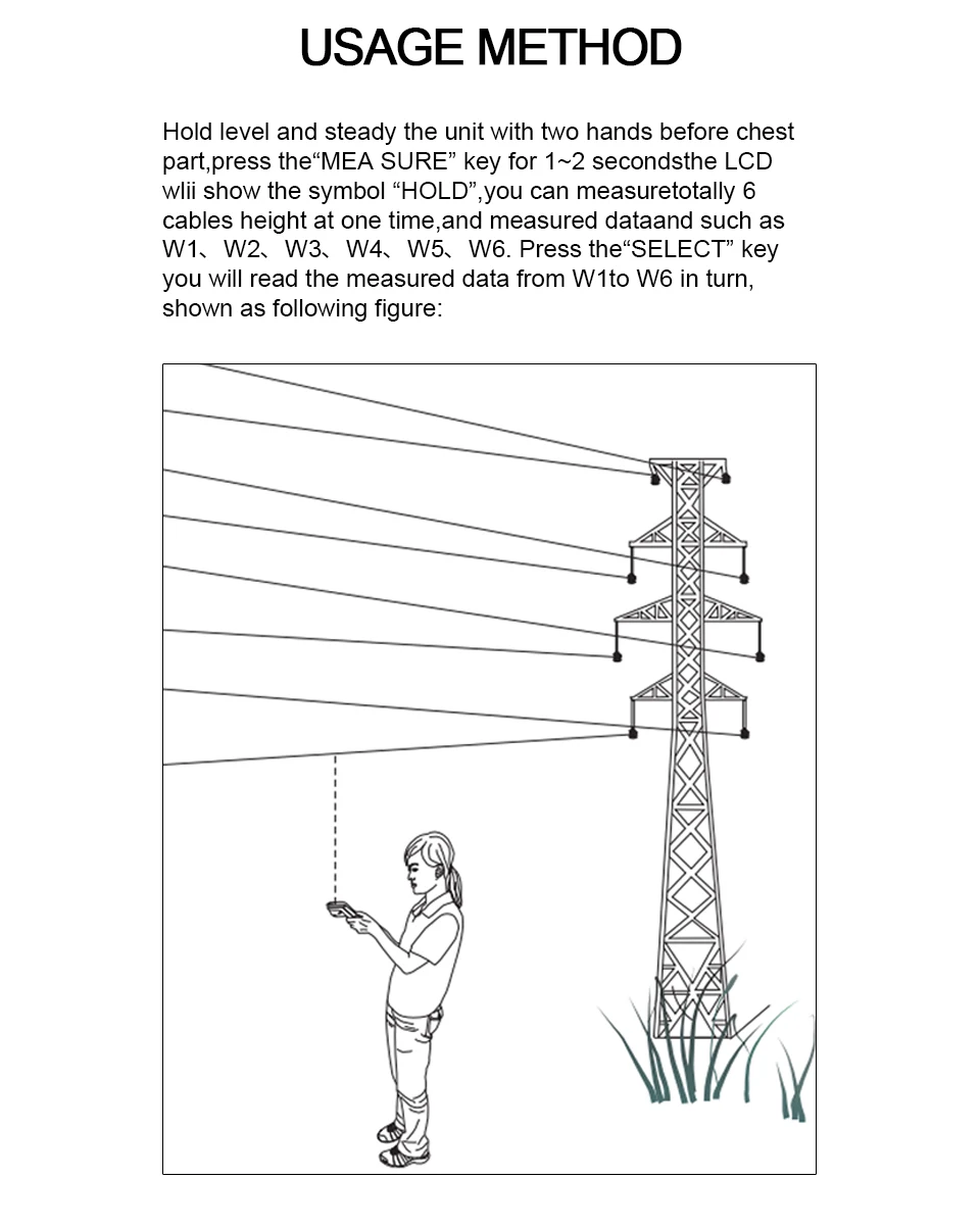 Цифровой ультразвуковой измеритель высоты кабеля Измерительный диапазон (высота 3-23 м, плоскость 3-15 м)