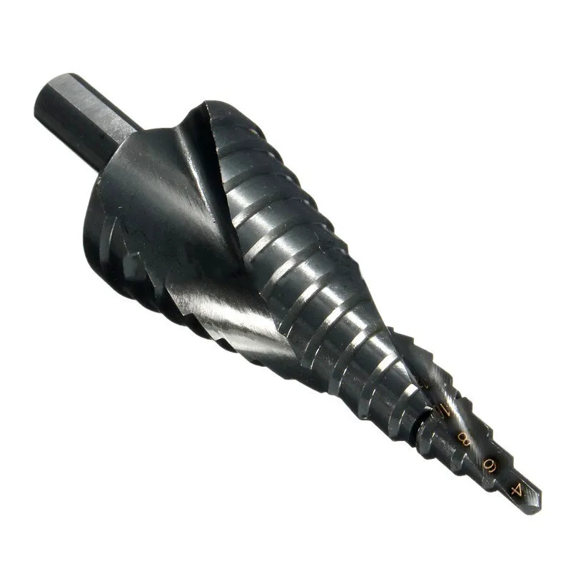 Ступенчатая Буровая головка бура изготовлено из быстрорежущей стали, высокая твердость и устойчивость к истиранию, долгий срок службы.