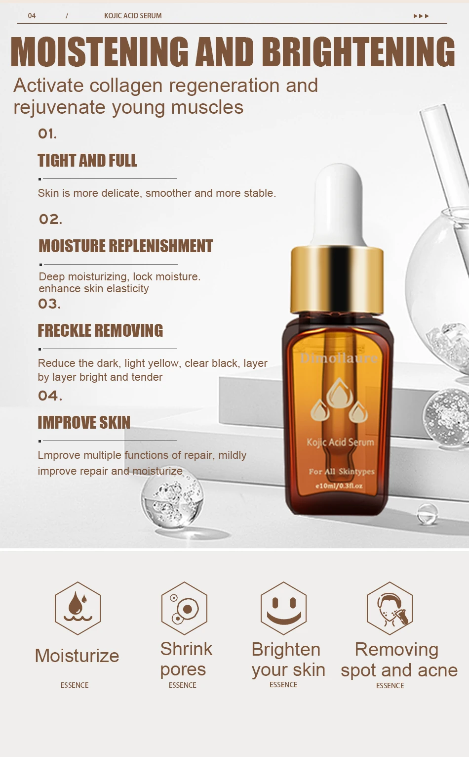 Dimollaure Kojic кислота отбеливающая сыворотка удаление шрамов Веснушка меласмы акне пятна пигмент солнечные ожоги против морщин против старения сыворотка