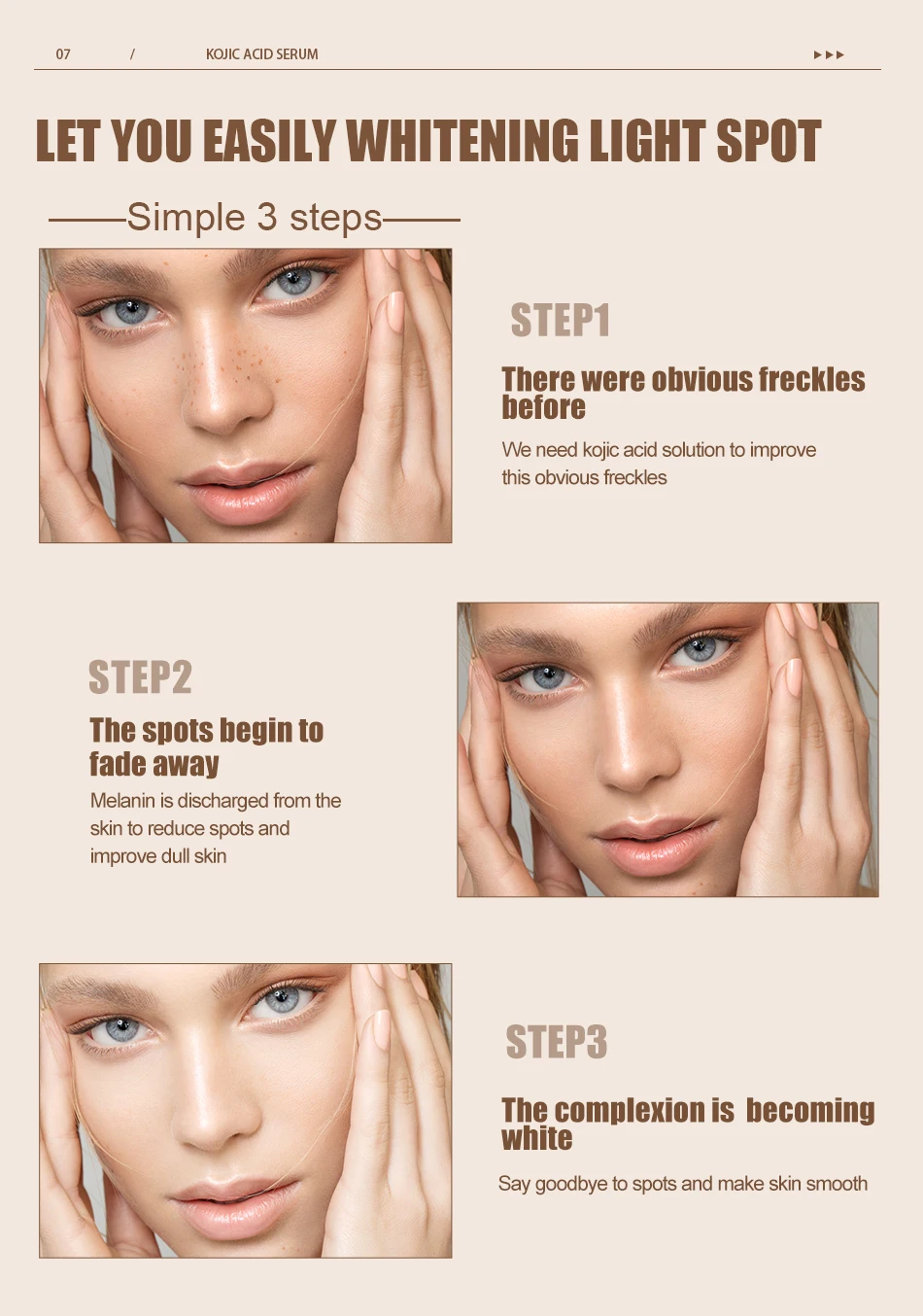 3. Сильно подавляет меланин кожи, эффективно удаляет веснушки, пятна от солнца, возрастные пятна, возрастные пятна, меласму, коричневые пятна, пигментацию, шрамы от акне