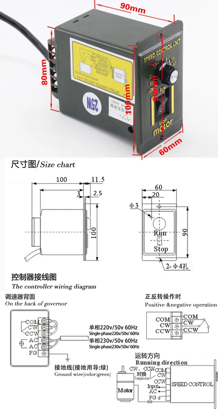 25 Вт 220 В двигатель переменного тока (двигатель + контроллер) высокоскоростной двигатель 1350 об/мин-2800 об/мин CW CCW скорость регулируемый двигатель переменного тока и регулятор скорости