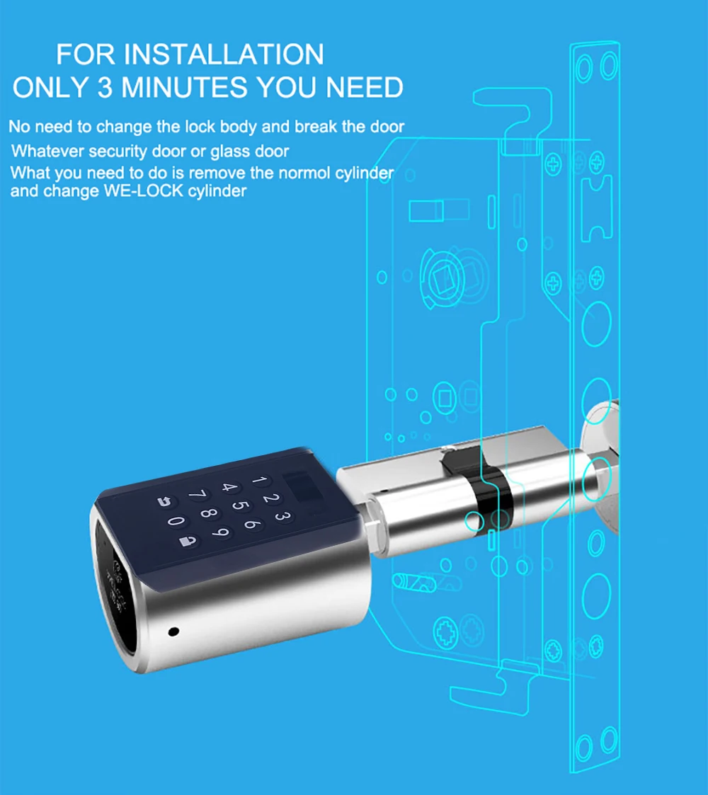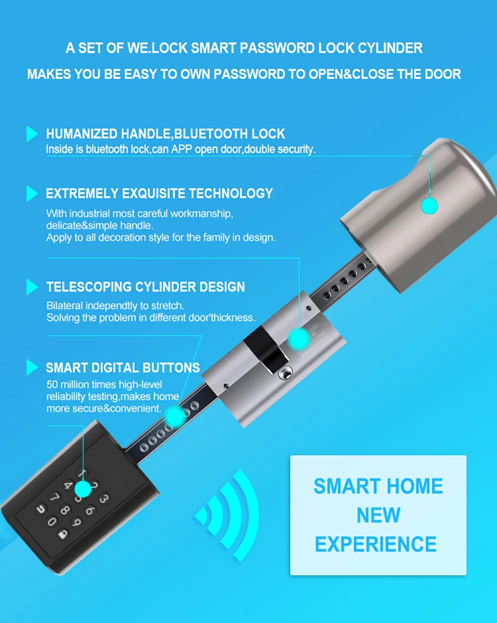 Характеристики Товара:Качество: 100% абсолютно новый и высококачественный микро-тип блокировочный сердечник с паролем. Умный цилиндр Bluetooth умный дом электронный App цилиндрический замок