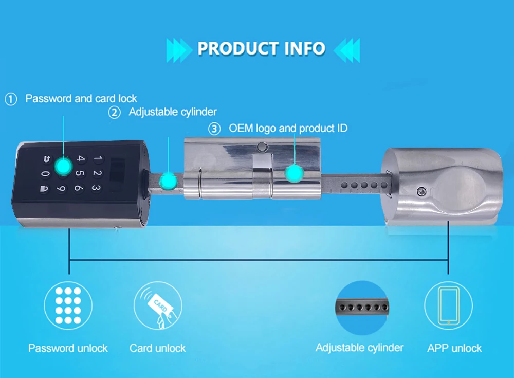 Стиль разблокировки: функция 4 в 1, пароль, RFID карта, Bluetooth, приложение.