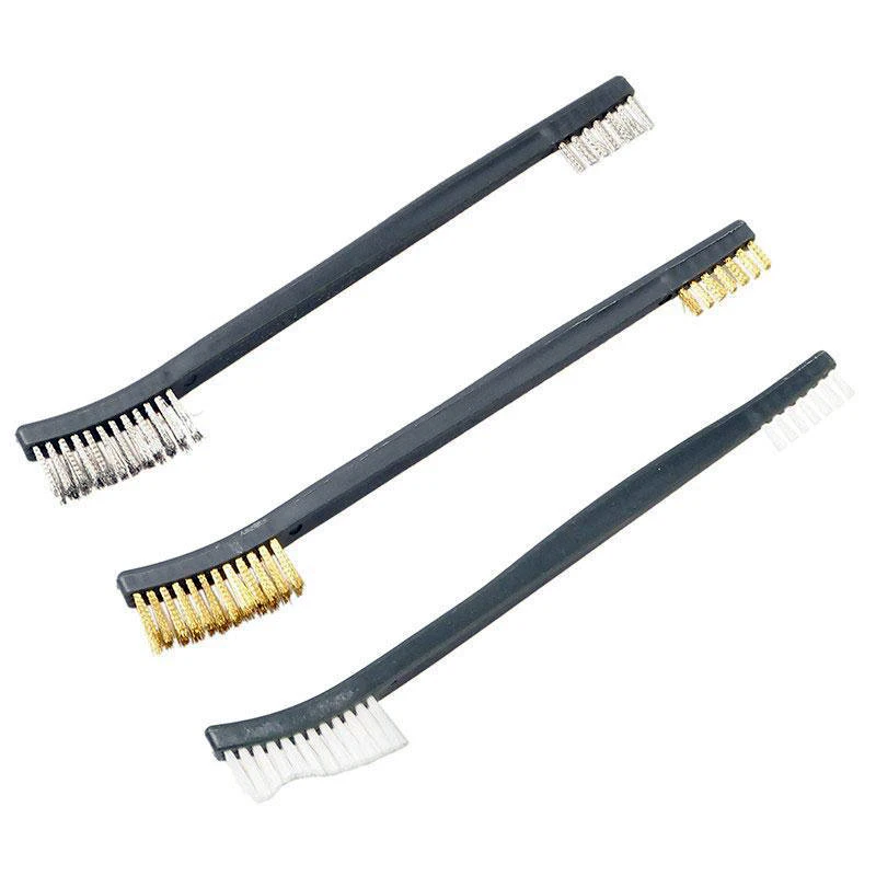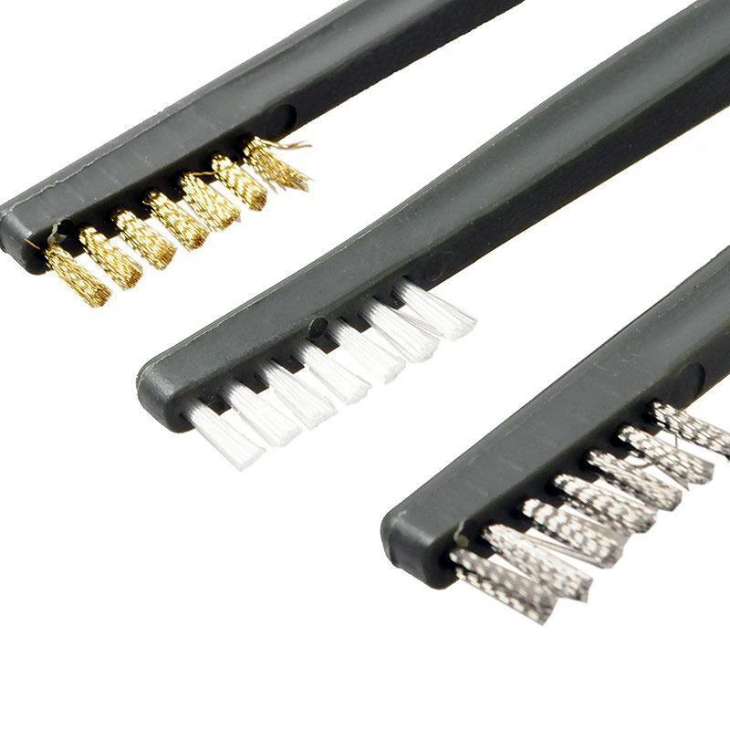 Нейлоновая Щетка: Brushe для чистки Электроники. ( Обратите внимание-Эта кисть безопасна для большинства применений, но не является официальным инструментом «ESD safe''.) Очистка пластика и обивки, Отделка приборной панели автомобиля и вентиляционные отверстия газонокосилки, вертикальные жалюзи и многое другое. Латунные щетки: Наконечники для пайки, металлический светильник, свечи зажигания и очистка батареи. Сталь щетка: Бытовая химия, kИтчен очистки.Краска, ржавчина и удаление коррозии на металле.