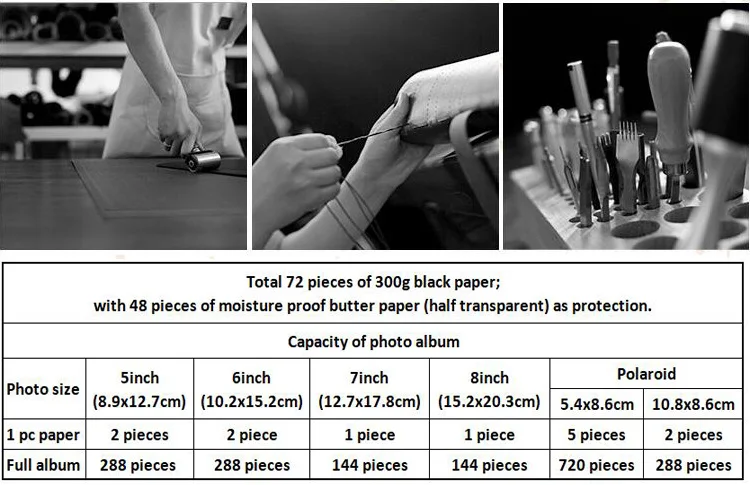 Товар: фотоальбом из натуральной кожи Технология: ручная работа Чехол: натуральная кожа Вставка: 300 г черная бумага, с влагостойкой бумагой для масла Размер крышки: 27x19,5x4 см (допустимый размер +/-1 см) Размер вставки: 18x26 см (допустимый размер +/-1 см) Вместимость: 72 листа/144 страницы черная бумага, 48 листов масляной бумаги Посылка включает в себя: 1x фотоальбом. Примечание: * При использовании первого слоя кожи возникают царапины и складки, со временем цвет кожи меняется. * Могут быть некоторые дефекты натуральной кожи, такие как шрамы, пигментация, неравномерный цвет кожи, рисунок роста, все это нормальное явление. Мы постараемся их избежать, но мы не можем гарантировать, что никаких недостатков вообще нет. Пожалуйста, будьте внимательны. * Избегайте дождя и воздействия, обратите внимание на техническое обслуживание, часто используйте его, и некоторые естественные дефекты могут быть медленно восстановлены.