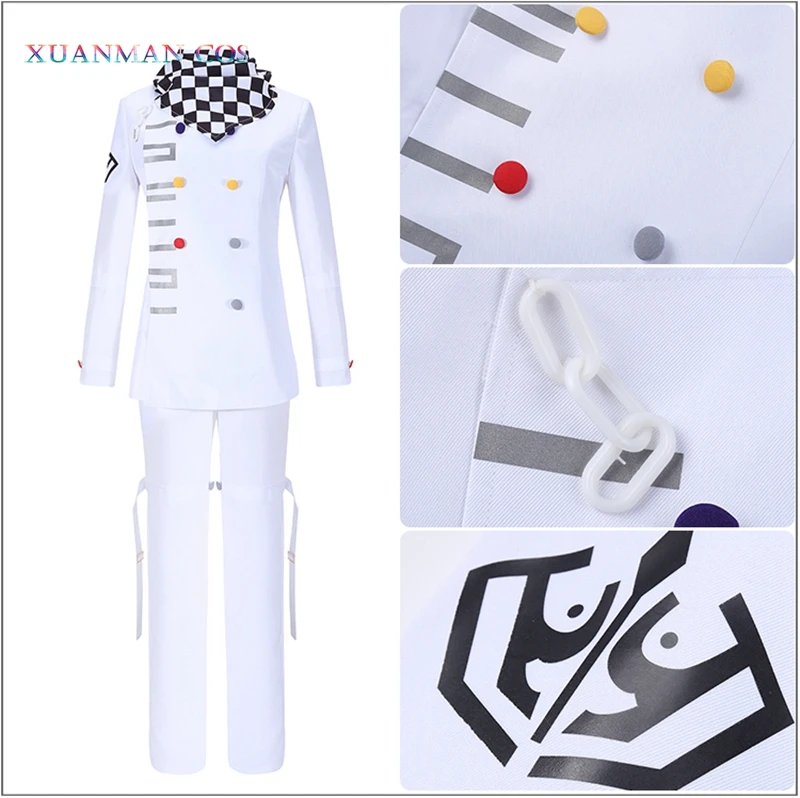 Danganronpa V3 Kokichi Ouma, белая униформа для косплея, костюм на Хэллоуин, нарядный наряд, штаны, полный комплект, карнавальный костюм с накидкой