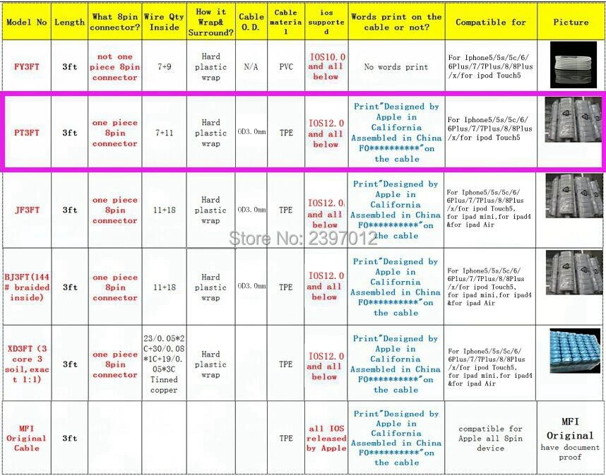 Детальное описание товара: Номер модели: PT3FT Более подробная информация о спецификациях кабеля, как показано на листе ниже, розовый знак 100% Фирменная Новинка Этот кабель гарантирует работу с iPhone x 8 7 6 Plus / 6 / 5 / 5S 5C Функция синхронизации данных и зарядного устройства USB Длина кабеля: 1 м/3 фута (100 см) Упакован в пластиковую упаковку Упаковка в прозрачный полипропиленовый пакет, 10 шт. в 1 полипропиленовый пакет Примечание: с печатью на кабеле.(Если вам не нужно слова на кабеле, пожалуйста, укажите это в заказе, спасибо!) Друзья, у нас также есть другие качества, если вам необходимо, пожалуйста, свяжитесь с нами, большое спасибо! :)