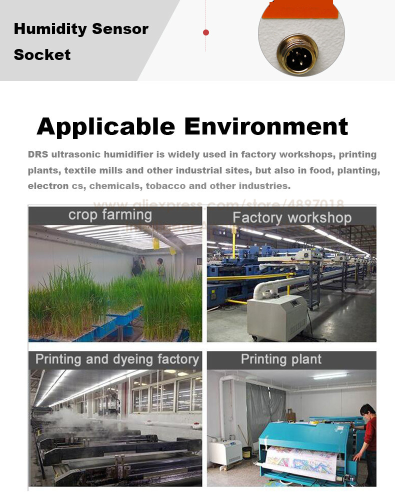 DRS ультразвуковой увлажнитель широко используется в заводских цехах, печатных заводах, текстильных фабриках и других промышленных площадках, а также в пищевой, посадки, электронике, химических веществах, табаке и других отраслях промышленности. Может точно контролировать влажность, чтобы устранить статическое электричество, пыль, свежесть играют важную роль.