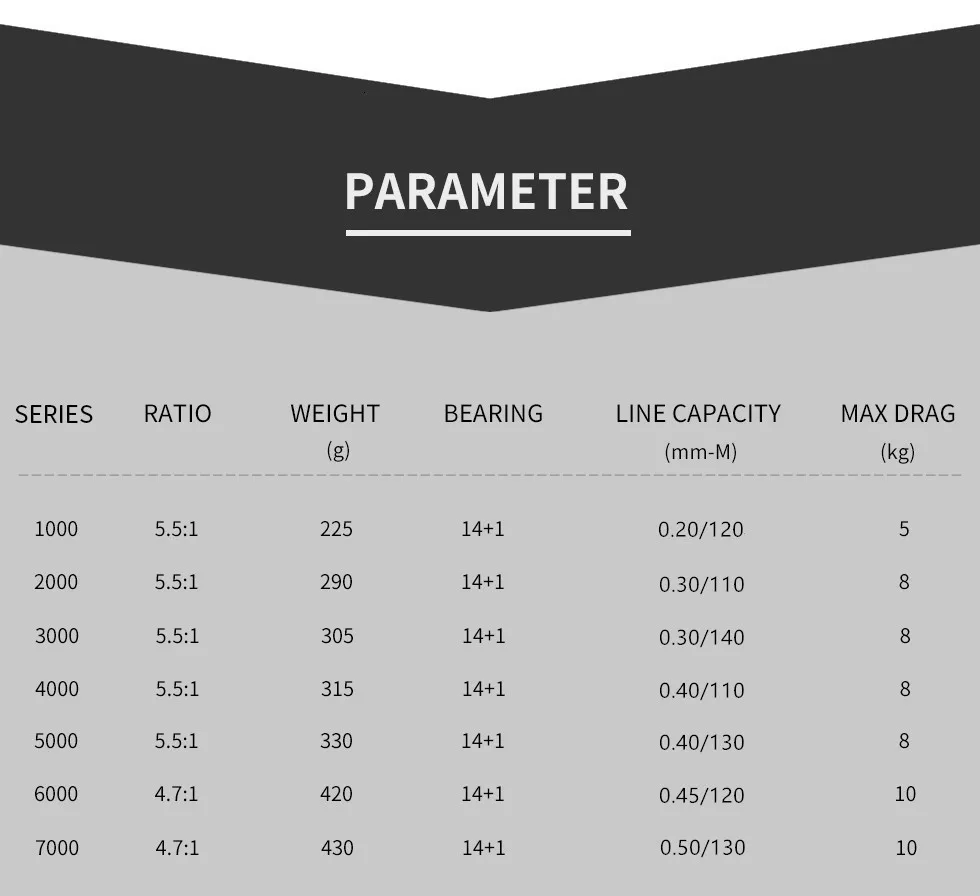 На улице 7000 | Вес: 430g | Передаточное число: 4,7: 1 | Максимальная сила натяжения: 10 кг | Линия Ёмкость: 0,50 мм/130 м