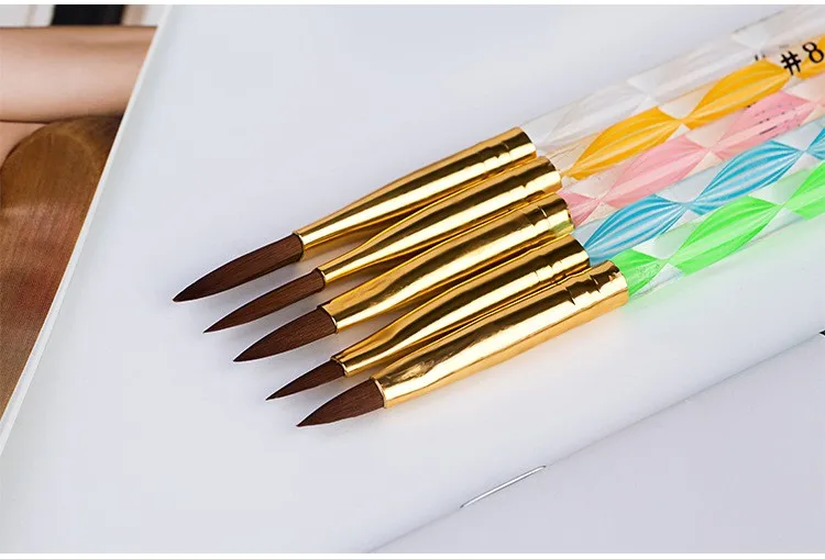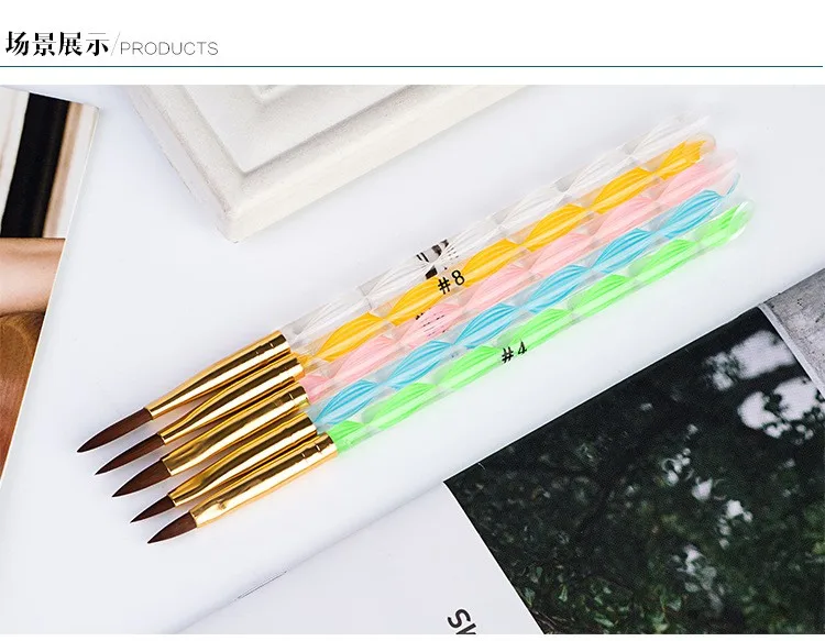 Акриловая кисть, есть #4 #6 #8 #10 #12 Нейлон хорошего качества Спиральная ручка может использоваться в качестве толкателя для кутикулы