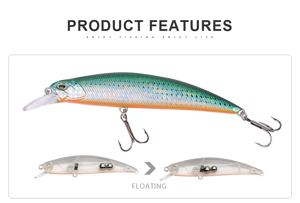Реалистичная картина и яркие 3D глаза делают приманку ярким плавающим действием в воде.