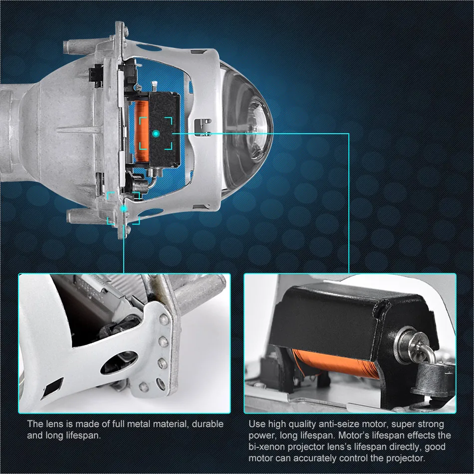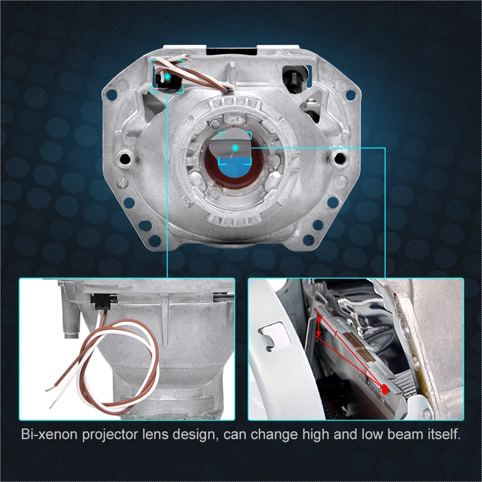 Характеристики: Bi-xenon проекторы объектива, предлагаем как дальнего, так и ближнего света функции.