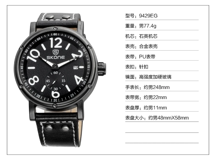 Мужские часы Номер изделия: 9429 Вес: 77,4 Особенности: механизм: кварцевый Кожаные Часы: Длина: 248 мм Спортивные часы Чехол Размер: 48 мм * 58 мм Наручных часов чехол Толщина: 11 мм