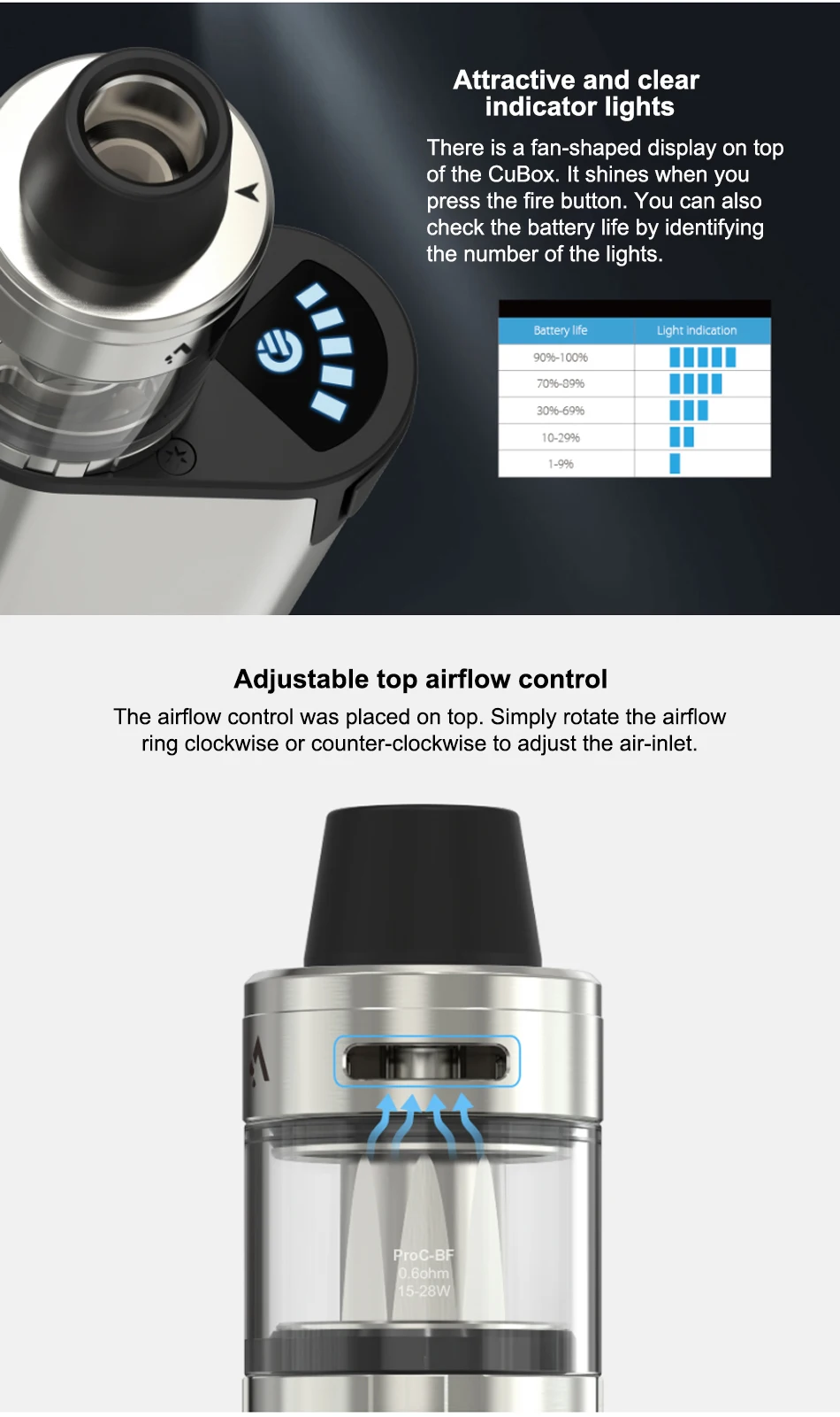 Головка распылителя: ProC-BF (0.6ohm) головка/ProC-BFL (0.6ohm) головка