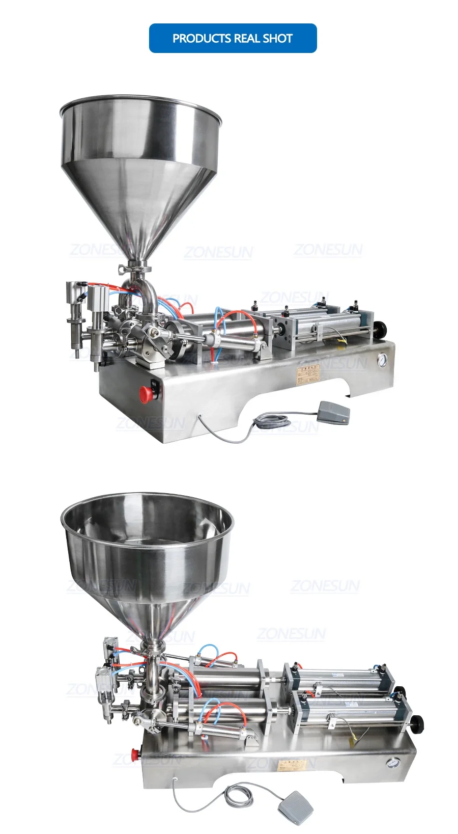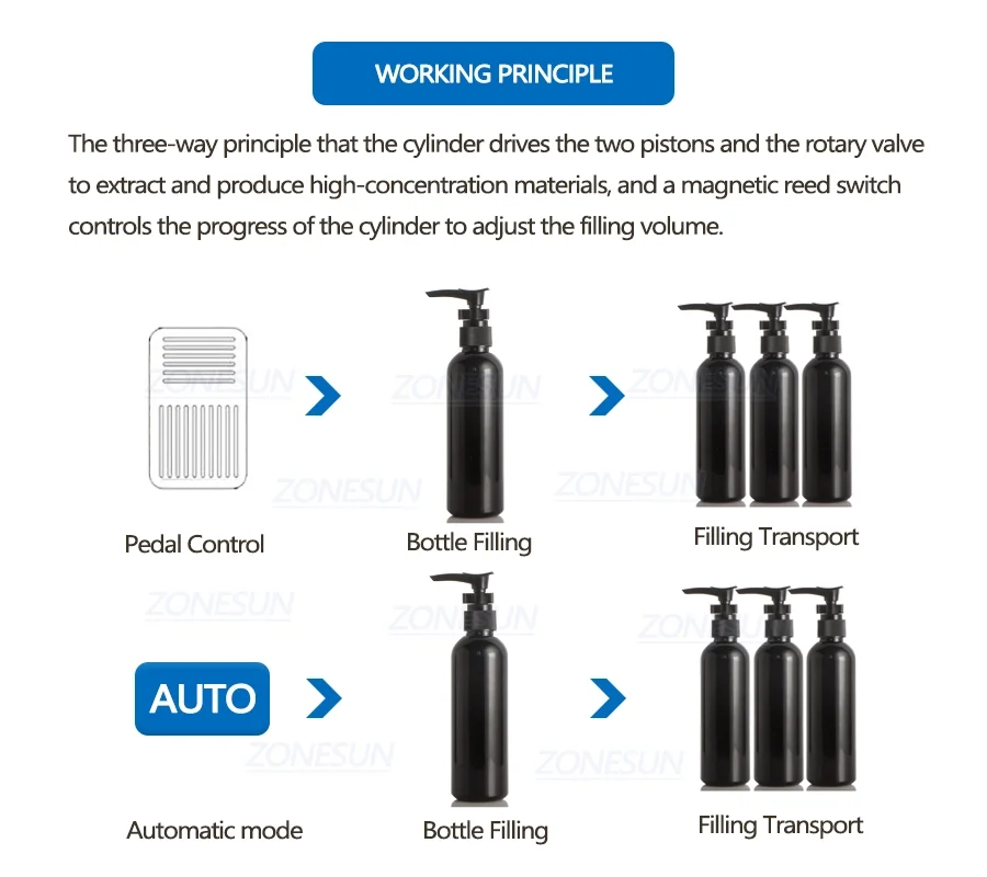 Эта серия полуавтоматической разливочной машины поршневой наполнитель. Управляемый цилиндром и поршнем, изготовленным из материалов с пятиходовыми клапанами, контролируют поток материалов, а Магнитный герконовый переключатель управления цилиндром может регулироваться объемом наполнения.