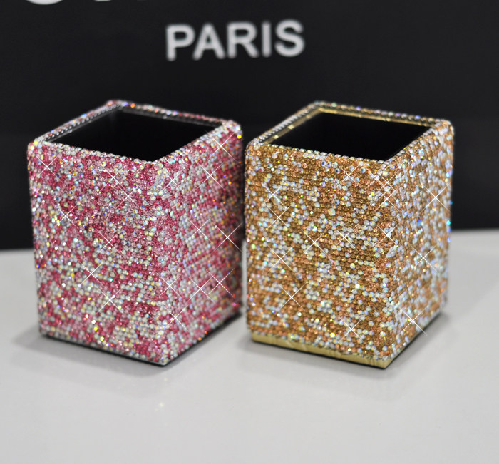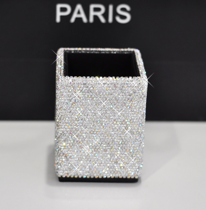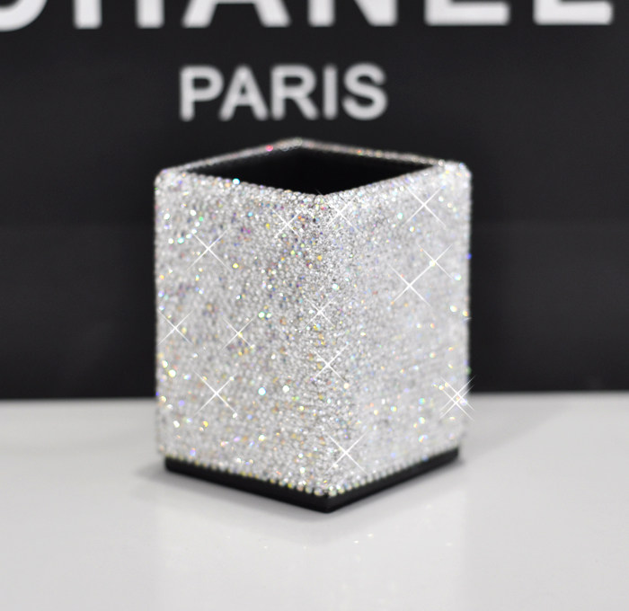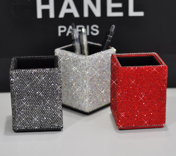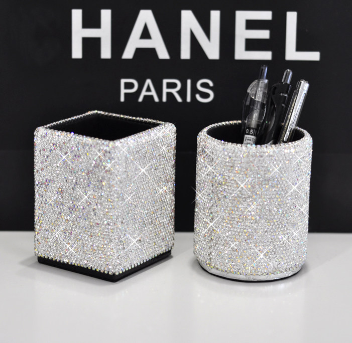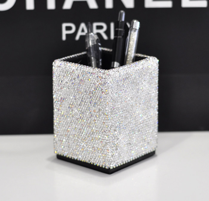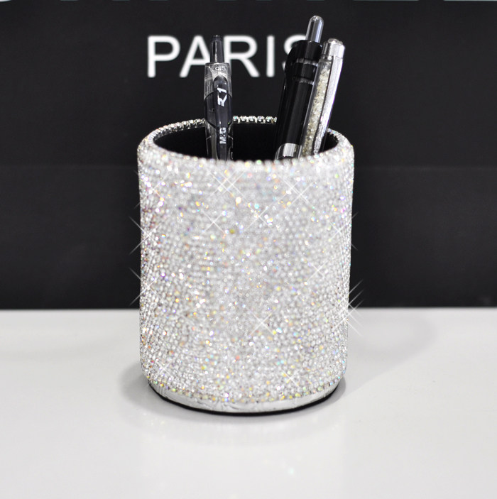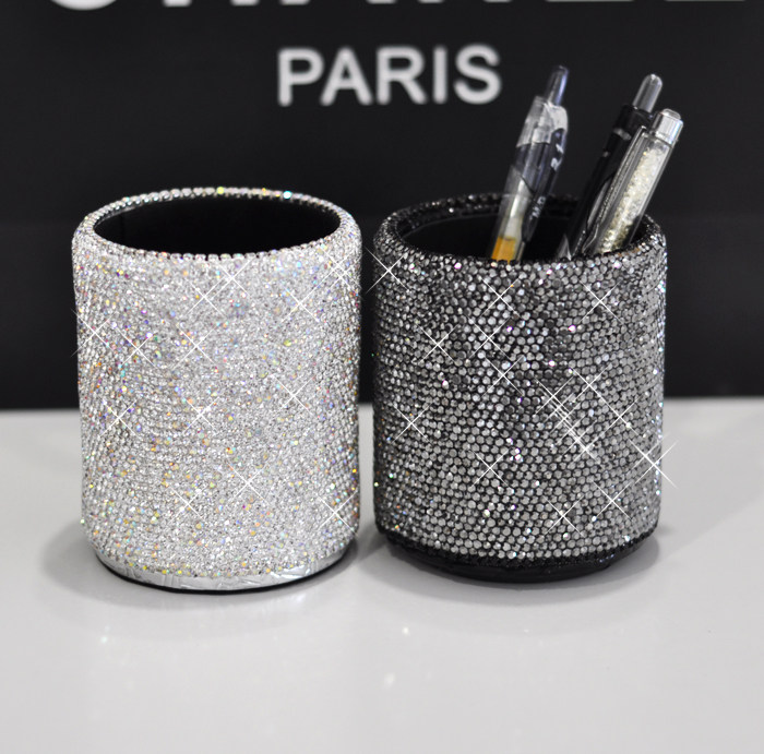 Кожаный держатель для ручек с кристаллами, офисный держатель для ручек, настольный органайзер, держатель для канцелярских принадлежностей, держатель для хранения, настольный декор