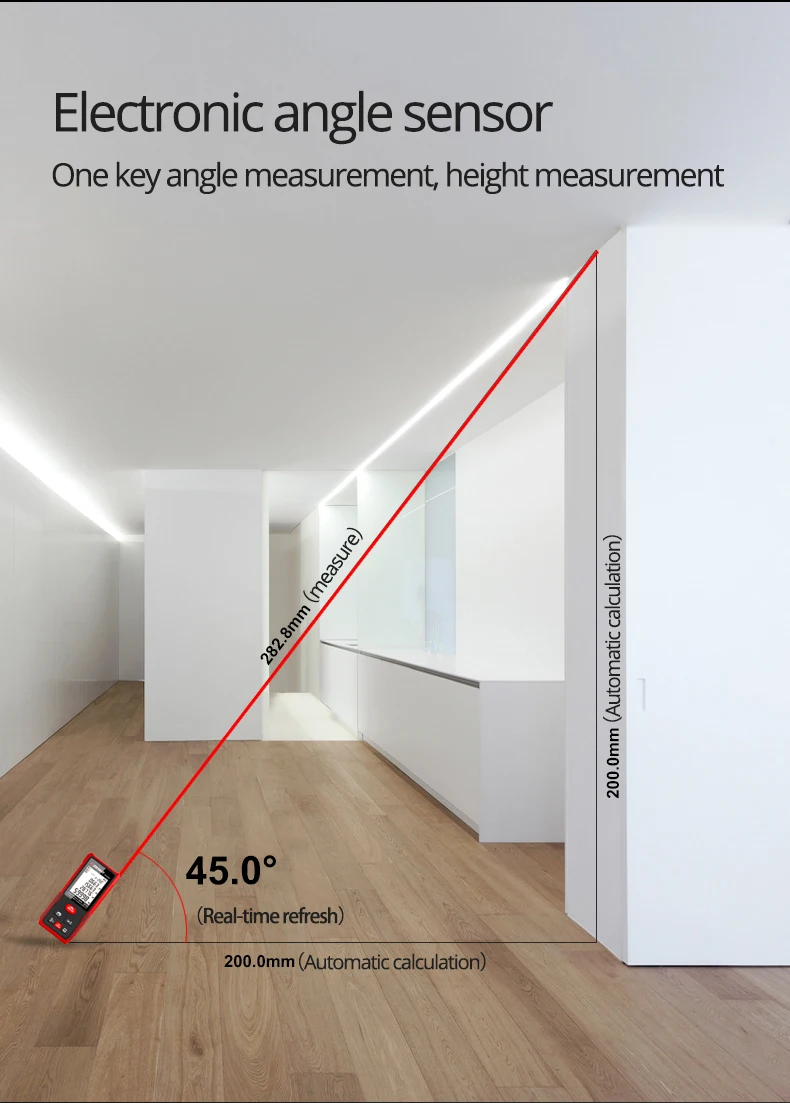 Наш лазерный дальномер специально разработан для точного измерения расстояния. Он поставляется с функцией измерения площади, объема, сложения, вычитания легко.
