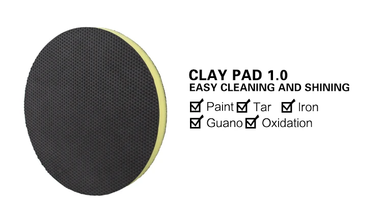 Особенности: * Детализирующая глиняная подкладка может прочно прилипать к полировщику или аппликатору для ручного ремешка. * Оснащен липучкой, которая удобна для установки и удаления из полировщика. * Помогает сэкономить половину времени и усилий глиняного бруса и предотвращает ношение ваших плеч, локтей, рук и рук. * Он может легко и быстро удалять загрязнения поверхности, вытаскивая их из вашего автомобиля и оставляет шелковистую гладкую краску. * Его можно промыть и повторно использовать много раз, что делает его гораздо более эффективным, чем глиняный брусок. Преимущества: * Больше окружающей среды, использует воду вместо других химических веществ. * Сокращает время работы пополам. * Экономически эффективный способ оставить краску без загрязнений. * До 40-50 приложений. * Делает автомобиль сияющим, как новый с минимальным усилием.