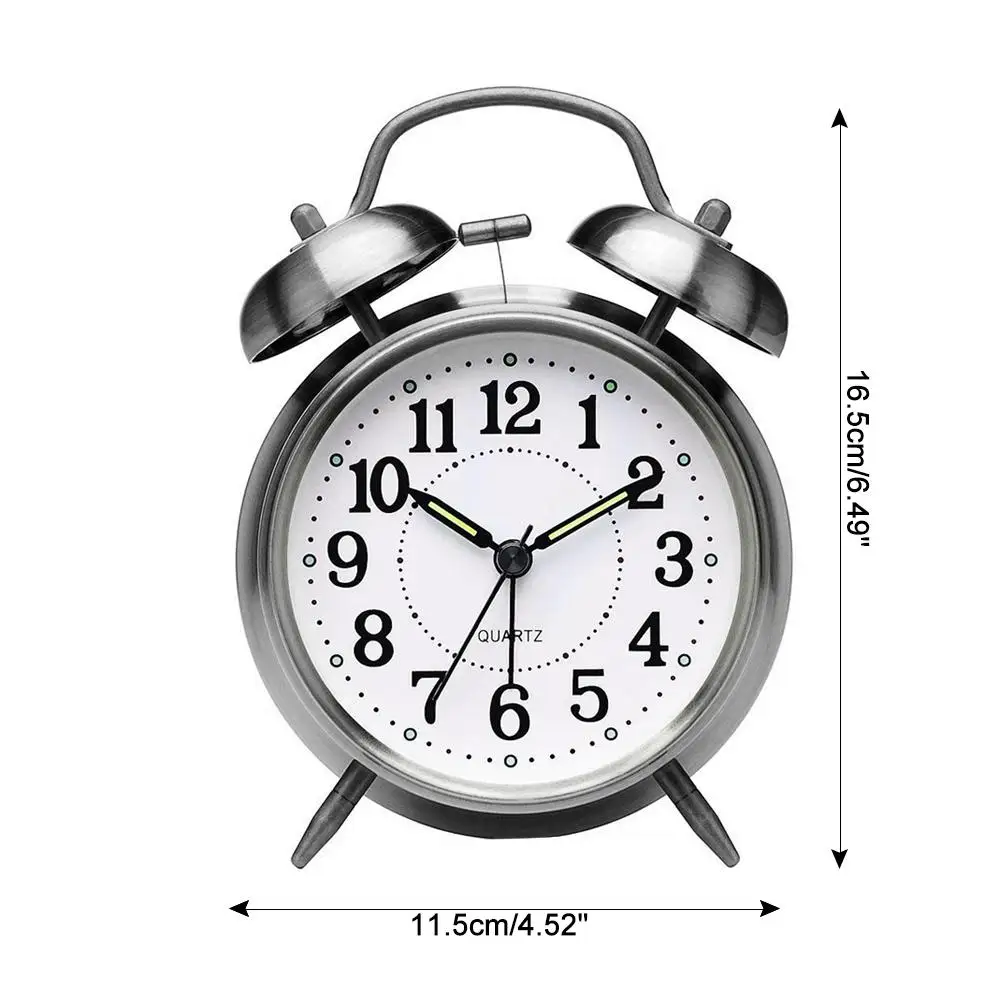 Ретро металлический будильник, Древний бронзовый звонок Будильник, ASD бесшумное движение, более точный и прочный. С функцией ночника.