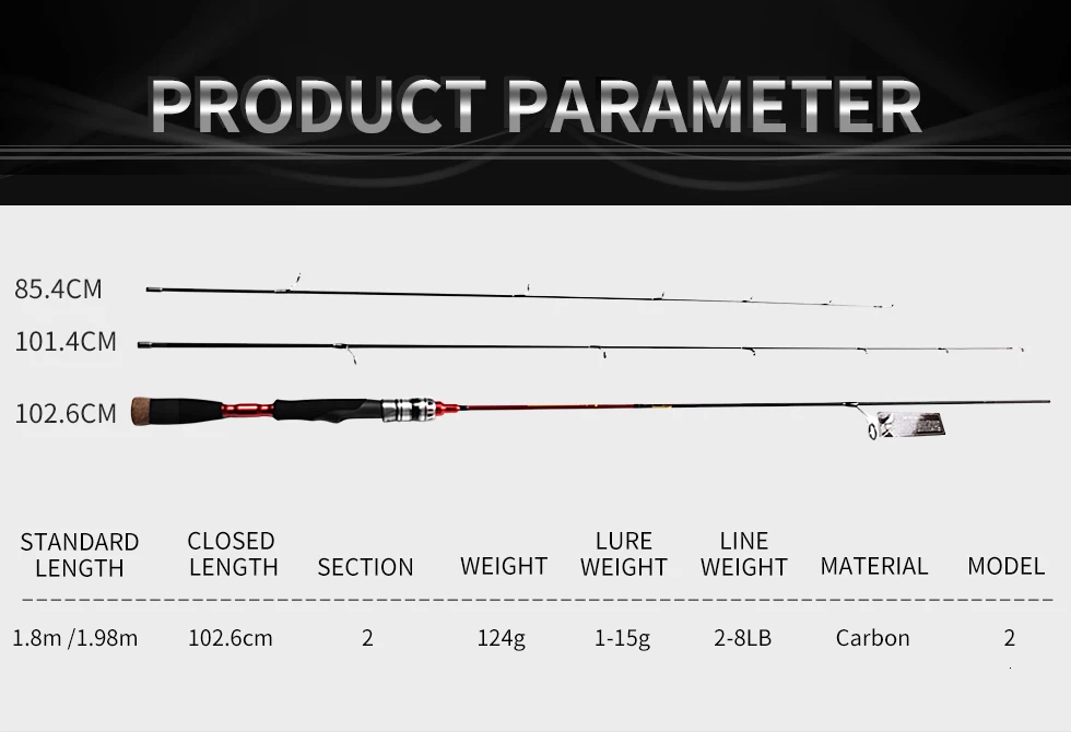 1.1.8 м/1,98 м два длины Моделя в одном стержне, 2 наконечника с разной длиной.
