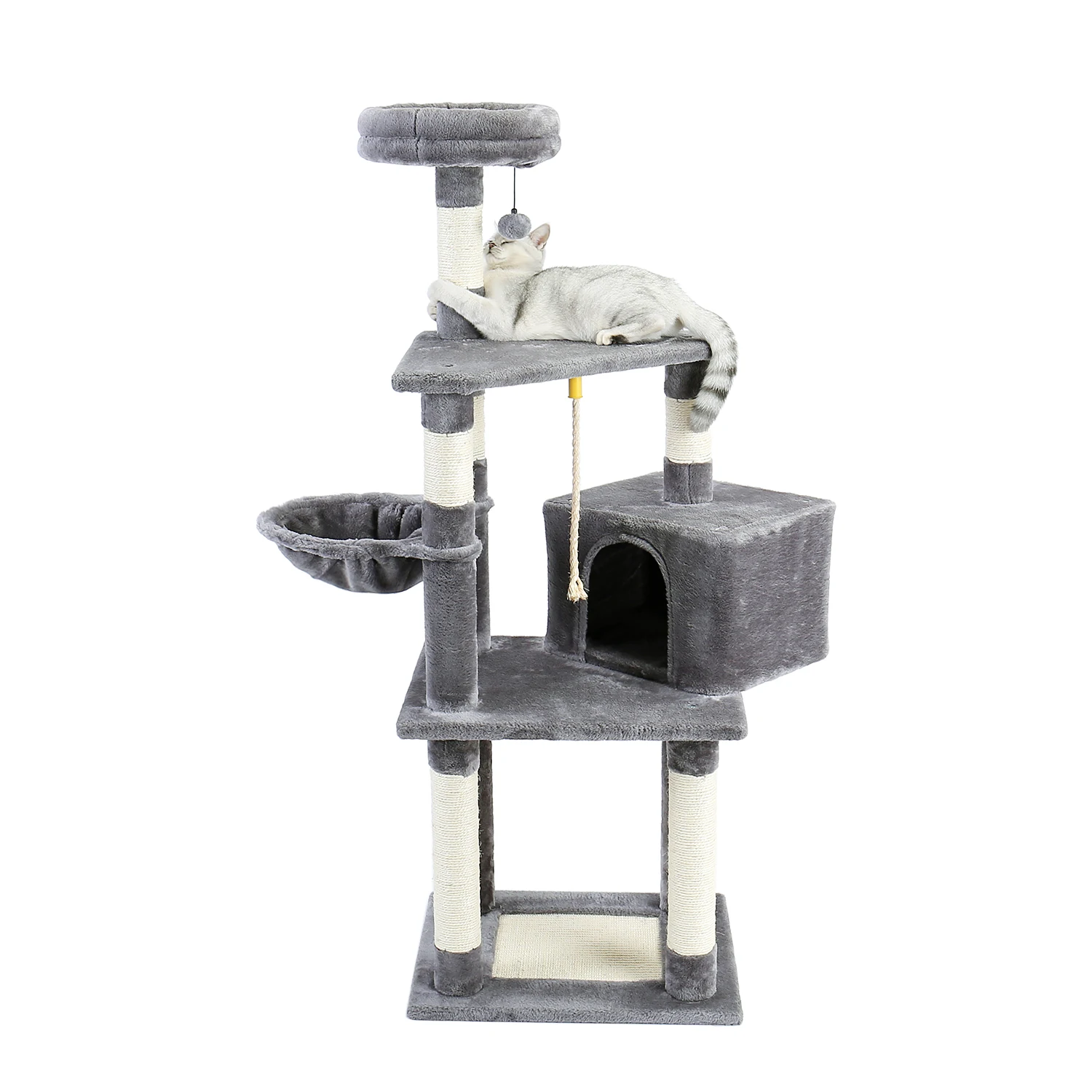 ·Идеальная игровая площадка: Многоуровневая конструкция обеспечивает достаточно места и разнообразие развлечений для ваших кошек. Плюшевый кондо и мягкое гнездо создают множество уютных мест для сна и отдыха. Сменный пушистый мяч и сизалевая веревка доставят дополнительное удовольствие.