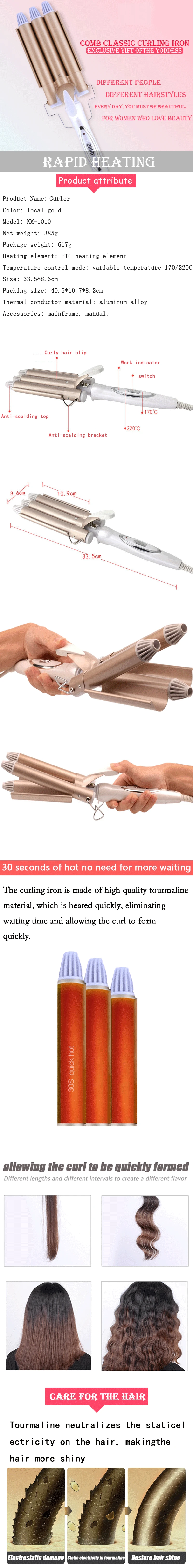 Керлинг "S" волны с 3 бочками одновременно! Косметический бытовой инструмент с удобным держателем и 3 завивками завивки, которые могут сделать волосы с великолепными волнами просто, идеально, чтобы помочь вам эффективно бриться быстро свернутый Волос Стайлинг. Между тем, это позволяет максимально универсальному вашему локону и вафельному стилю, таким как локоны, волны, штопор локоны и колечки.