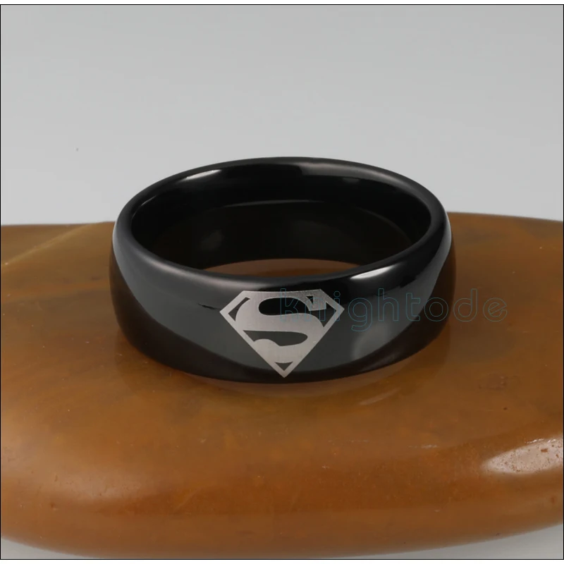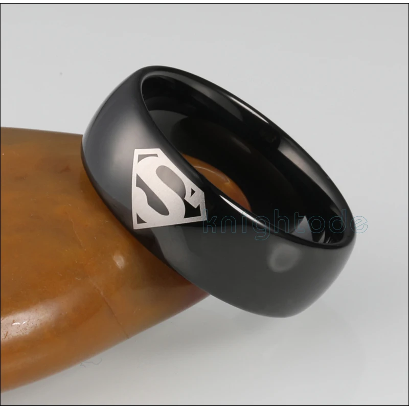 8 мм черные кольца Супермен купол полированный