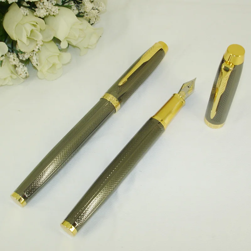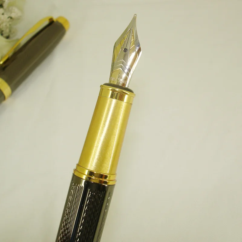 : ACMECN новый роскошный Темно-серого цвета каллиграфическая Ручка компьютер резной узор с золотыми акцентами 0,5 мм Диаметр пишушей головки перьевая ручка
