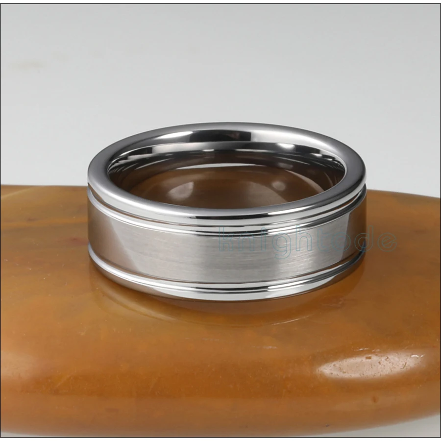 8 мм вольфрамовые кольца двойной паз матовый плоский ремешок