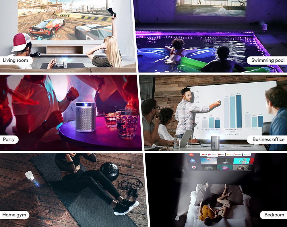 MoGo Pro, вы можете наслаждаться вашим личным кинотеатром с потрясающим большим экраном от 30 до 100 и отличным звуком. Просто поднимите ноги, сядьте на спинку и наслаждайтесь идеальным фильмом. Кто должен выйти на улицу, когда кинотеатр может быть установлен дома или на заднем дворе для детей?