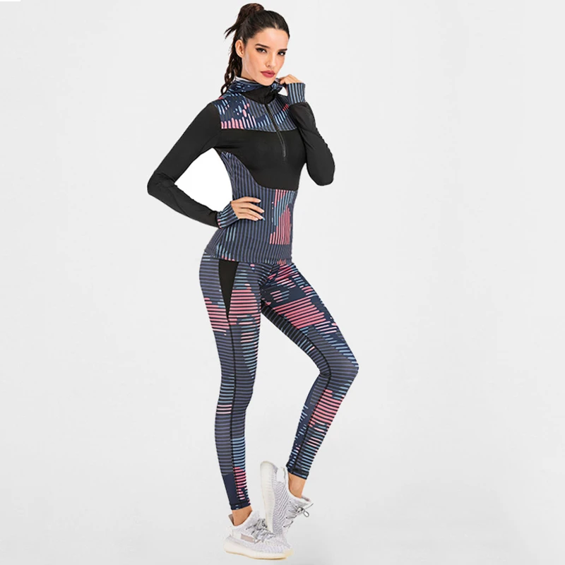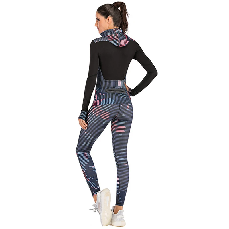 Новый спортивный костюм с принтом, костюм для фитнеса, леггинсы, комплект для йоги из 2 предметов, Спортивная одежда на молнии, футболка, спортивные штаны, спортивный костюм для женщин