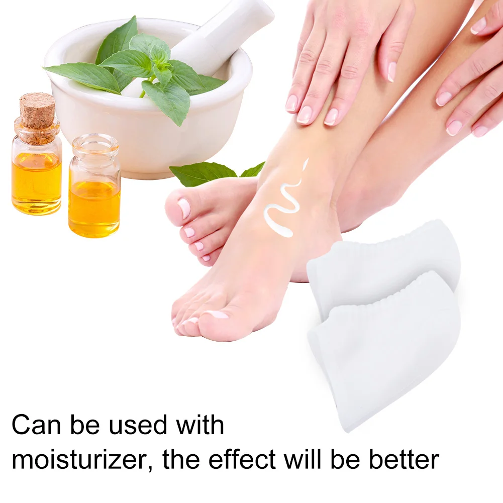 Супер тонкий и глубокое увлажнение - Встроенный супертонкий и увлажняющий гипоаллергенный гель в пятке носков может обеспечить интенсивное увлажнение, чтобы смягчить вашу сухую, твердую, треснутую и грубую кожу на пятках ног. Также обеспечивает улучшение внешнего вида, помогая уменьшить тонкие линии старения