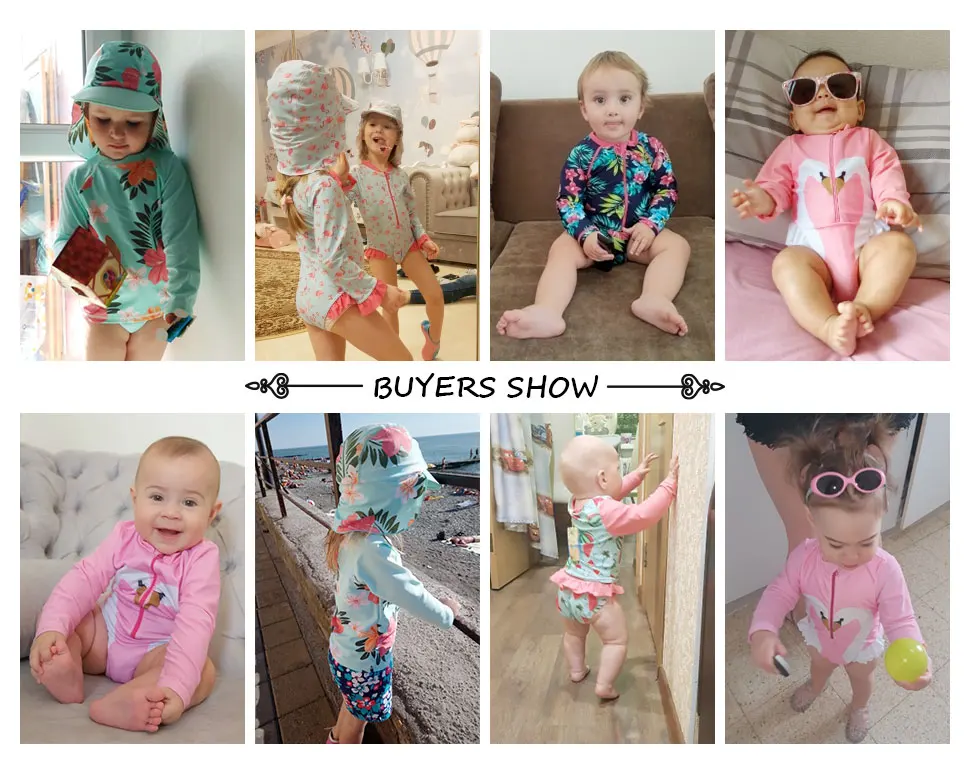 Детский купальник "Лебедь" Длинные рукава upf30 + uv50 + для детей ясельного возраста, одежда для купания для девочек, Цельный купальник с застежкой-молнией