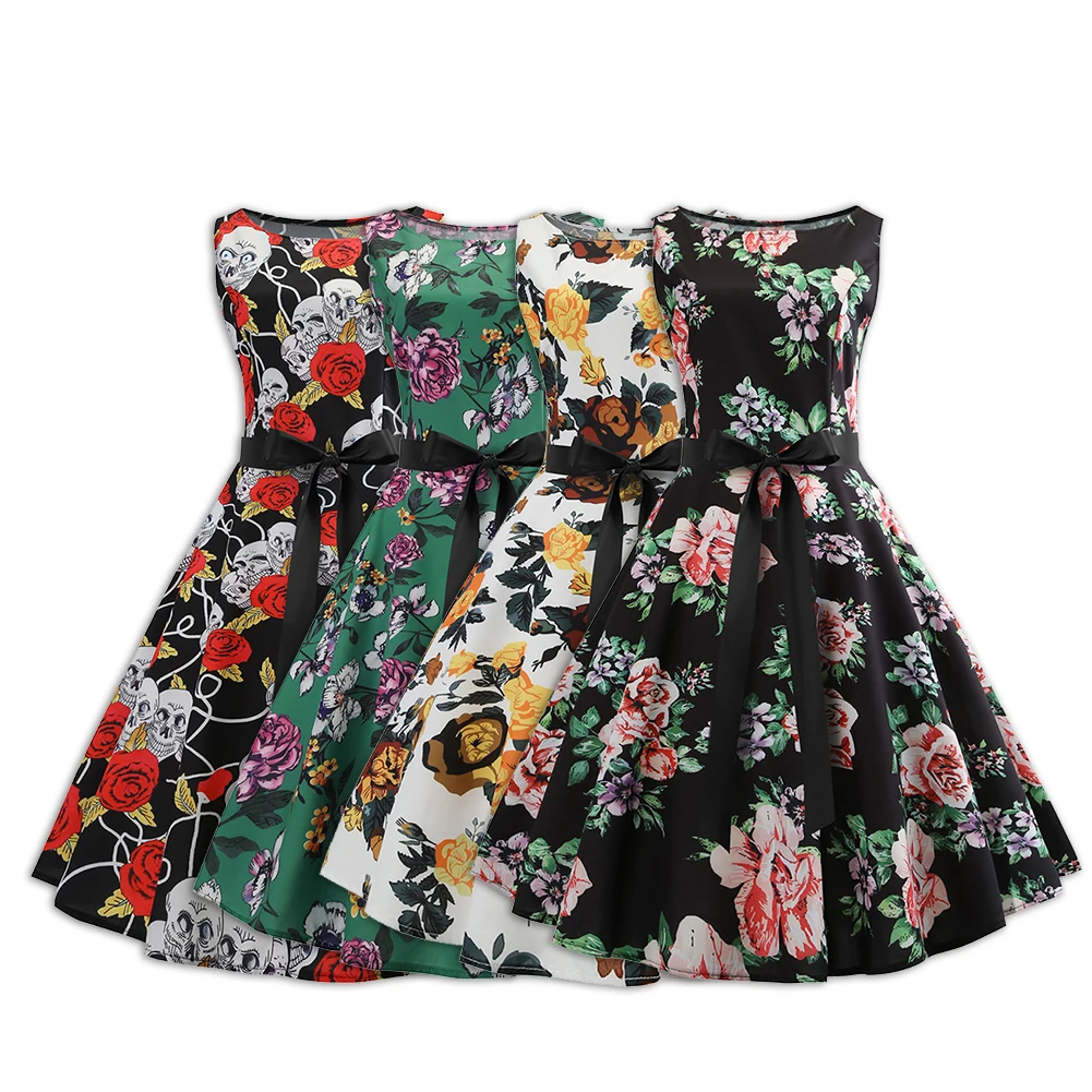 Популярные элементы: 50 S винтажное платье-клеш в стиле Хепберн с принтом головы черепа и розы