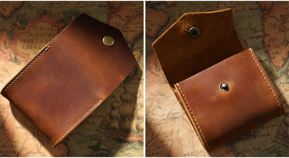 Кожа Crazy Horse: Хотя это называется Crazy Horse кожа, на самом деле она сделана из воловьей кожи. Это нормально, что эта кожа легко подобрать царапины и имеет преобразование цвета, когда вы его складываете. Царапины могут быть потерты мягкими. После нескольких месяцев использования кожа станет блестящей и яркой, что делает ее более винтажной и деревенской. Примечание: старайтесь избегать воды или масла при использовании. Если кожа грязная, просто аккуратно протрите ее губкой.