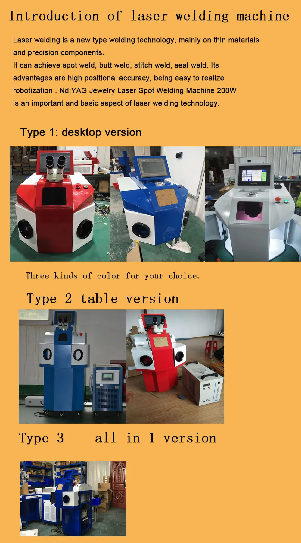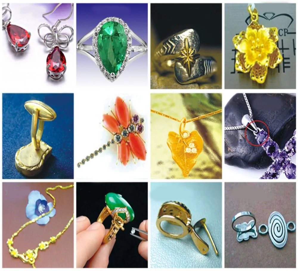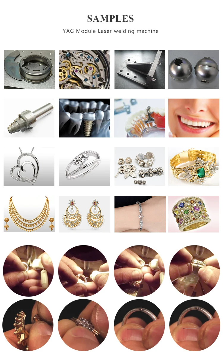 Точечная сварка, перфорация, ремонт, утилизация и изменение размера золотых/серебряных/титановых/платиновых ювелирных изделий и небольших аксессуаров. Также широко используется в авиации, аэрокосмической, спортивной продукции, медицинских инструментах, протезах из титанового сплава, инструментах, электронике, машинном оборудовании, автомобиле и т. д.