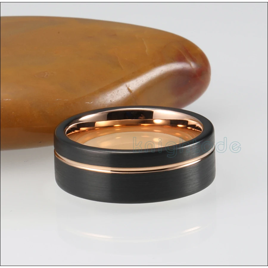 8 мм двухцветное черное вольфрамовое кольцо розовое золото офсетная линия плоская матовая