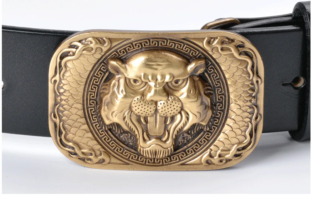 Кожаный ремень ручной работы (пряжка тигра)