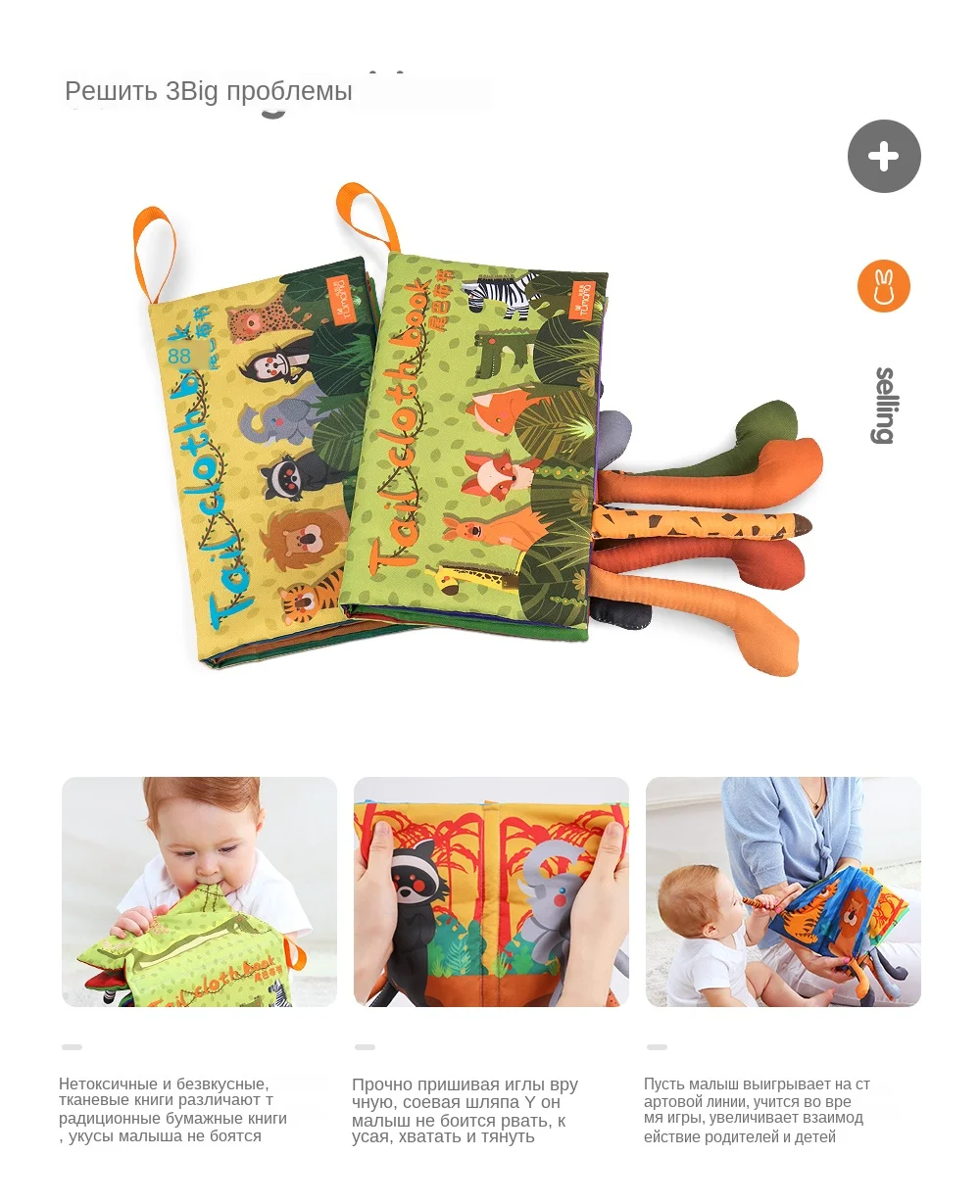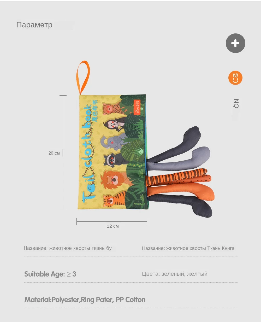 Tumama книга-погремушка с хвостами животных и креплением к коляске для детей Развивающие игрушки - Брэнд: Tumama kids - Материал: Ткань, Бумага с эффектом шуршания, Полипропиленовый хлопок - Цвет: Зеленый / Желтый - Размер: 20 см *12 см (большой размер) Особенности: 1: Яркие цвета привнесут красок во время использования 2: Шелест бумаги позволит развивать слух ребенка 3: Объемные хвосты животных из различных материалов позволяют развивать осязание детей 4: Устойчивые цвета не боятся стирки и укусов 5: Удобный шнурок: позволяет закрепить игрушку на кровать или коляску и играть в любом месте