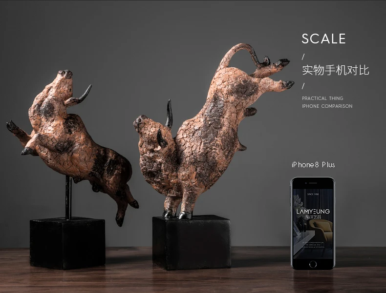 Произведения Nanyang бытовой дизайнерские европейский стиль ретро крупного рогатого скота интерьера животные, бык Скульптура гостиная украшения