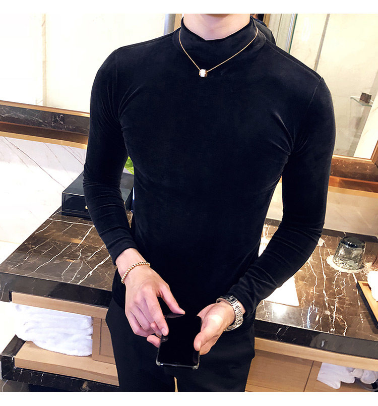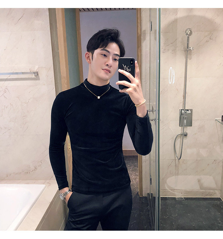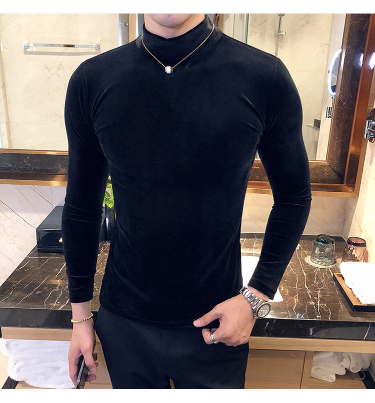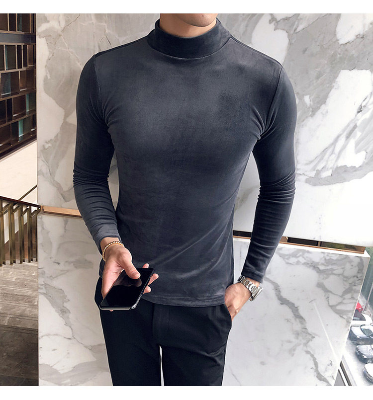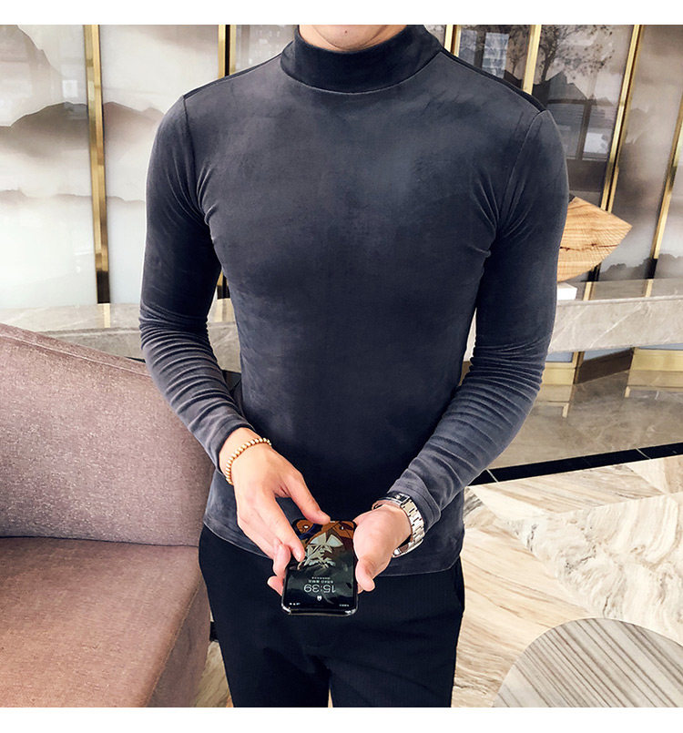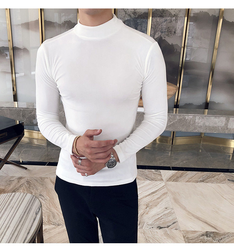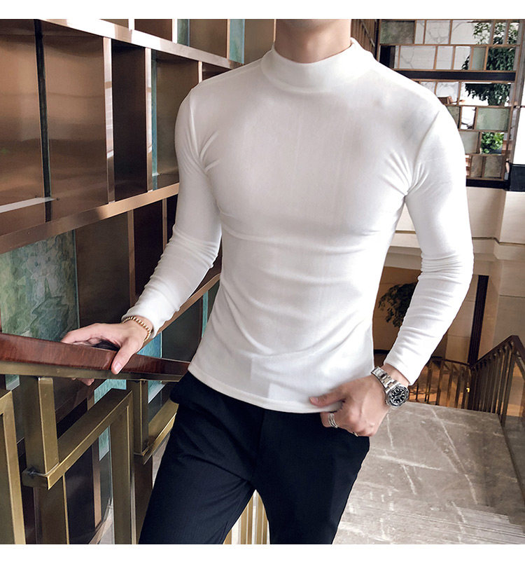 Осенняя мужская футболка с длинными рукавами и высоким воротником...
